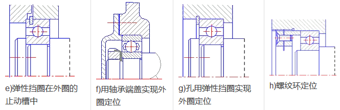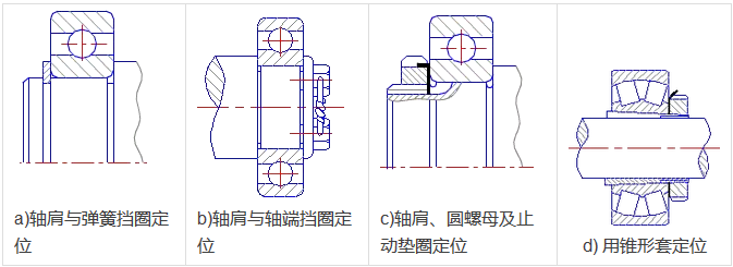 滾動軸承內(nèi)外圈的定位與固定的方法很多,下列為幾種常用的方法。